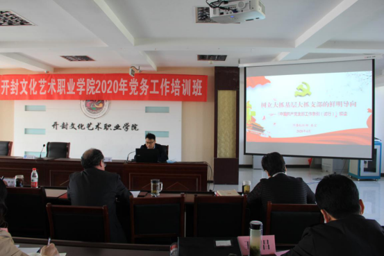 4月29日,学校2020年党务工作培训班在办公楼326开班。全体党委班子成员,各党总支和校企合作学院党支部书记,各院部专职副书记,各行政、教工和学生党支部书记参加学习。