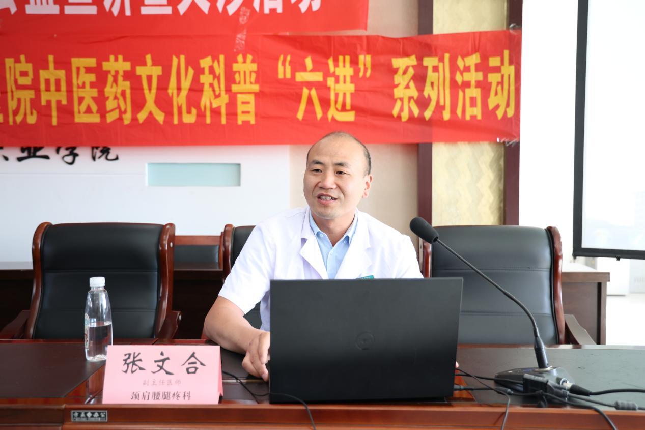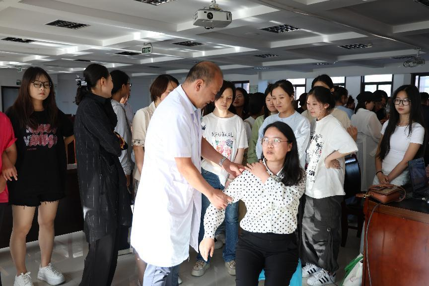 市中医院颈肩腰腿疼科张文合主任以《关爱颈椎远离病痛》为题,深入浅出地从颈椎病的症状、类型、治疗方法以及经典案例等几个方面做了系统地讲解,并介绍了日常防护颈椎病及日常保健的方式方法。随后,张文合、妇科医生马永明、中医内科医生徐岳、脑病科医生孙屹4位专家给大家进行了义诊,专家们为在场师生把脉问诊、辨识体质,耐心解惑答疑,根据不同的体质状态,给予教职工们有针对性的饮食、起居、运动等方面的健康指导。