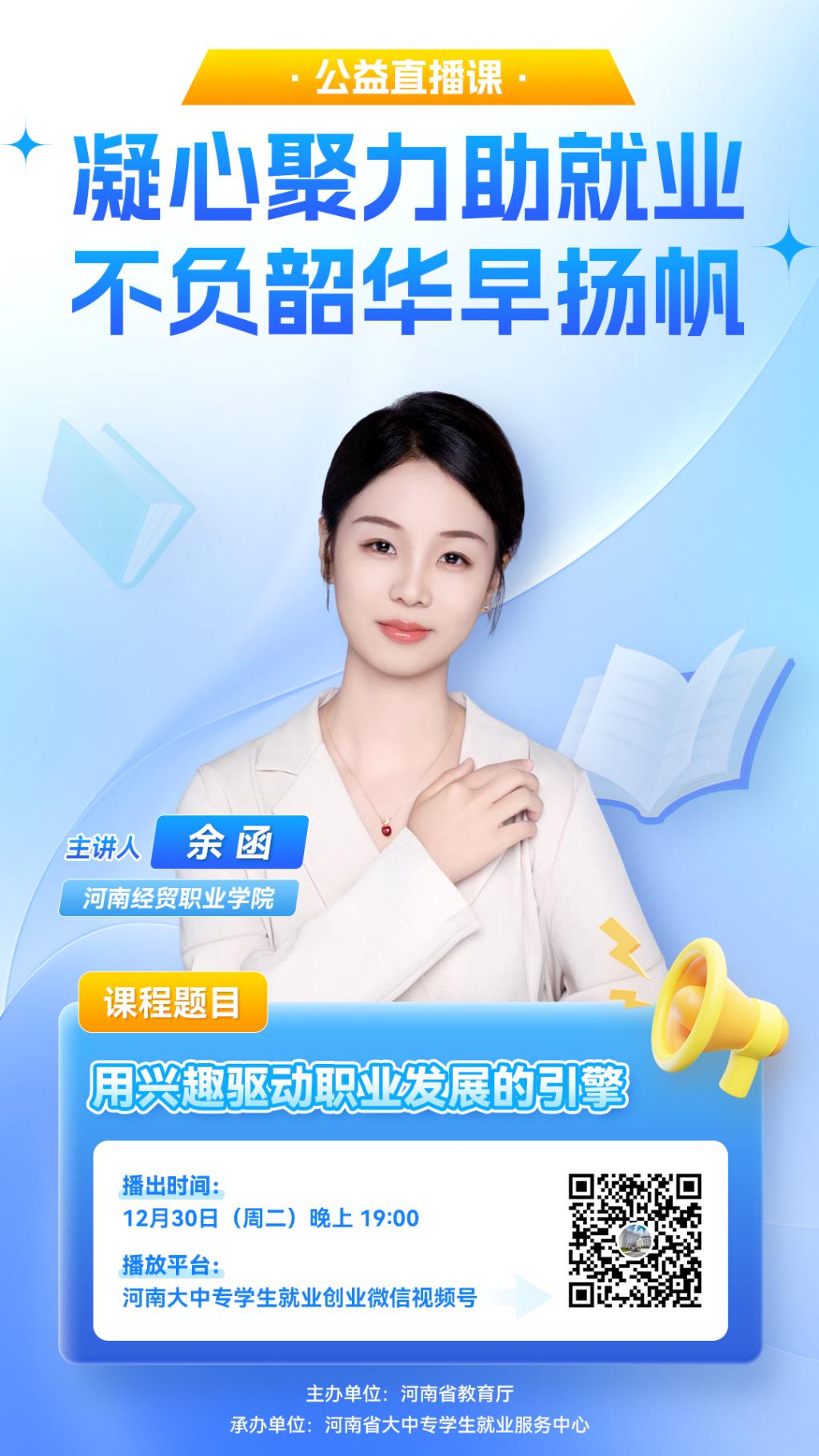 今晚19:00,河南省“互联网+就业指导”公益直播课:用兴趣驱动职业发展的引擎