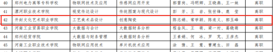 我校工艺美术学院陈志娟副教授《创意陶瓷》课程、音乐学院叶胜副教授《合唱指挥》课程,被认定2023年河南省职业教育一流核心(线下)课程。