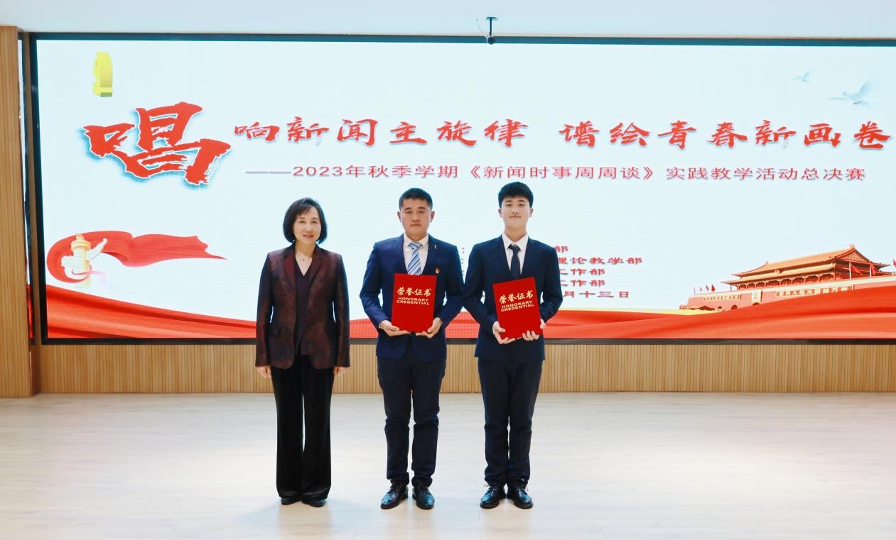 沈洁霞强调,思想政治理论课是立德树人的主渠道主阵地。近年来,学校党委注重建设完善大思政格局,充分发挥了思想政治课在立德树人过程中的主渠道主阵地作用,并积淀形成了“不畏艰险、团结奋斗、知难而进、甘于奉献”的价值观和工作作风。针对百年未有之大变局,对青年学生进行国际局势、国内形势、国情民情教育,通过《新闻时事周周谈》严肃活泼、风采尽展的实践教学平台,培养学生的历史使命感、文化认同感和社会责任感,提高学生辩证思考问题的能力,正确处理好个人与社会的关系,正是思想政治工作真正落到实处的集中展现。