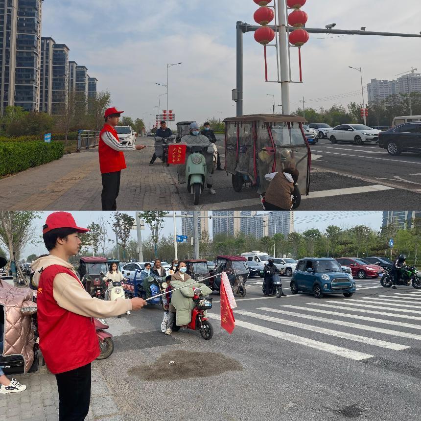 为塑造文明向上的城市氛围,提高市民的文明素质,助力全市居民文明交通出行,创造安全、畅通、文明、和谐的城市道路交通环境。4月11日,甲骨文软件学院遵照学校安排,开展“志愿服务我先行,指挥交通促文明”文明交通志愿者服务活动,6名志愿者来到东京大道与四大街交叉口参与文明交通行动,传播志愿服务理念,维护良好交通秩序。