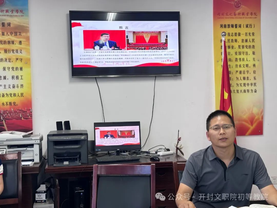 为全面深入学习贯彻党的二十届三中全会精神,大力弘扬教育家精神,切实把贯彻落实全会精神转化为推进学院高质量发展的生动实践,按照学校党委的统一部署,9月4日,初等教育学院在4302会议室召开了党的二十届三中全会精神宣讲会。学院党总支书记王伟进行宣讲,全体教师参加会议,院长王社良主持会议。