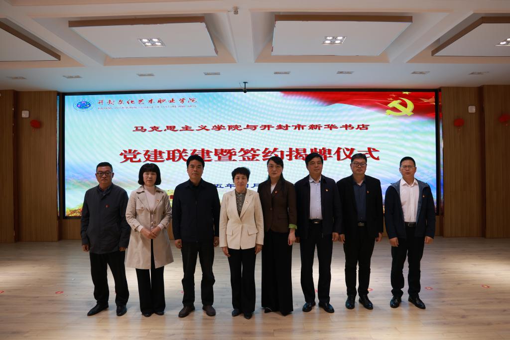 4月22日上午,我校马克思主义学院与开封市新华书店党建联建暨签约揭牌仪式在四号报告厅隆重举行。开封市新华书店党委书记、经理闫青、副经理李好军,校党委副书记成芳,校组织统战部长王国昌,马克思主义学院领导班子成员、全体思政课教师,开封市新华书店党员代表及我校学生代表150多人参加了本次签约揭牌仪式。仪式由马克思主义学院教师肖茹主持。