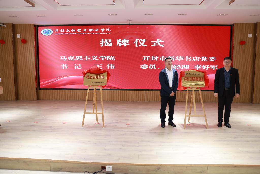 马克思主义学院党总支书记王伟和与开封市新华书店副经理李好军共同为实践基地揭牌。