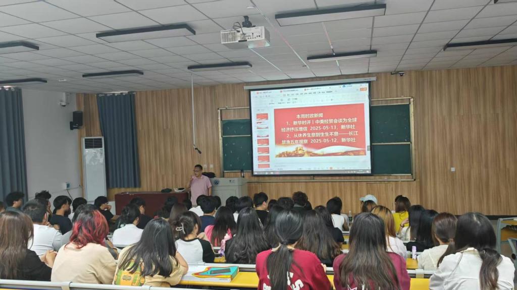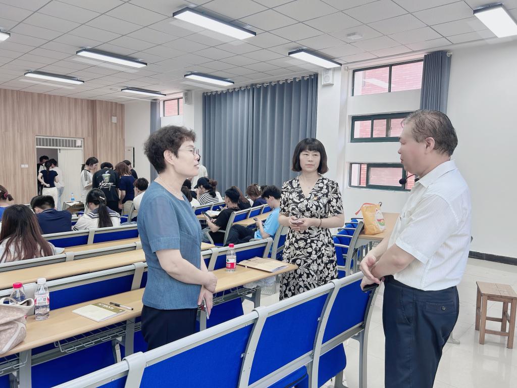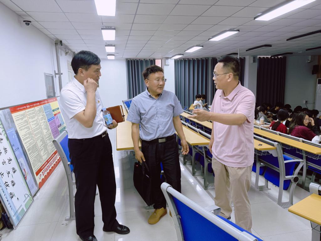 根据中共河南省委教育工委办公室、河南省教育厅办公室《关于开展2025年度全省高校春季学期思政课“大听课 大调研”活动的通知》工作安排,5月19日上午,第十九组专家组成员郑州升达经贸管理学院马院院长程明欣、焦作师范高等专科学校马院院长李彩红、河南大学马院副教授沈贺莅临我校开展听课调研活动,指导我校思政课建设发展。马克思主义学院党总支书记王伟、院长张鹤鸣、副院长翟粉荣、张治水陪同调研。