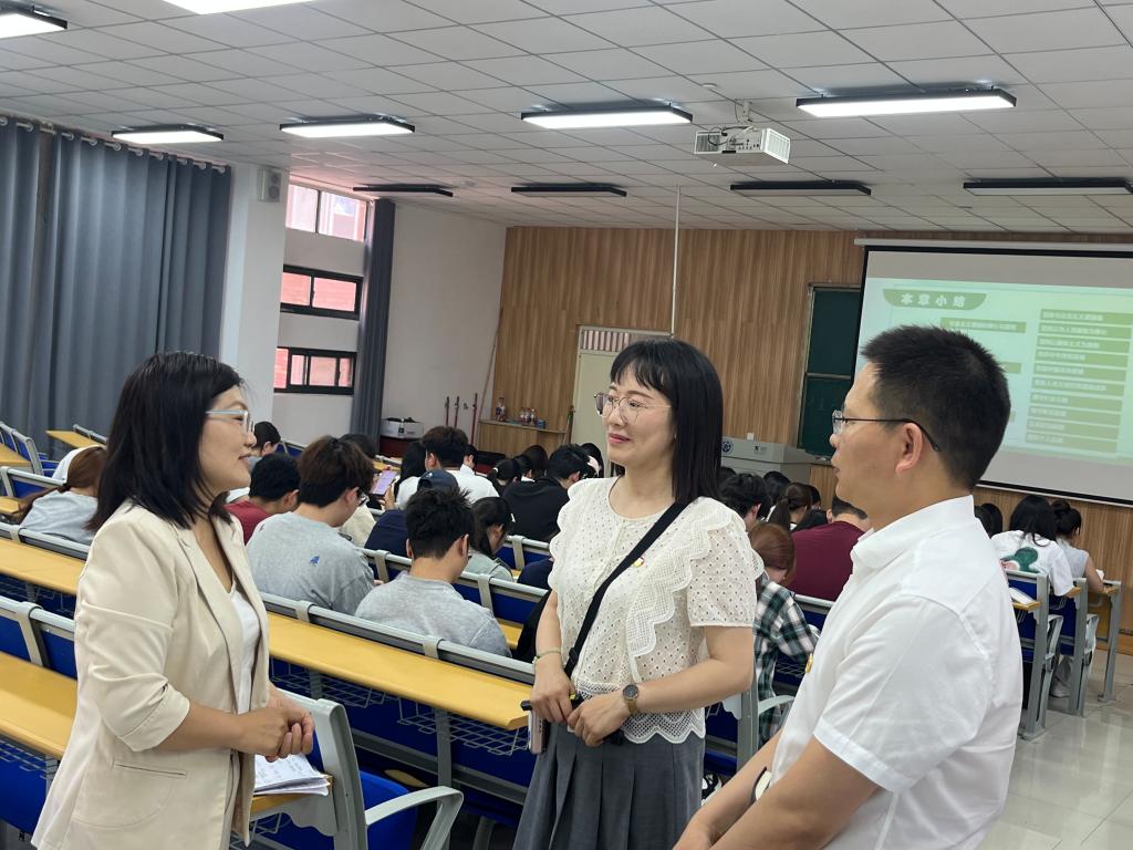 调研组专家采取随机选择、推门听课的方式,分别听取了尹金欣老师讲授的《习近平新时代中国特色社会主义思想概论》和陈九双、郑庆老师讲授的《思想道德与法治》课程。在听课过程中,专家组分别对三位教师的教学内容、教学方法、课堂互动、教学效果等方面进行了细致观察与记录。授课教师们以扎实的理论功底、生动的案例讲解、多样化的教学手段,引导学生深入思考,课堂气氛活跃,充分展现了我校思政课教师良好的教学素养和精神风貌。