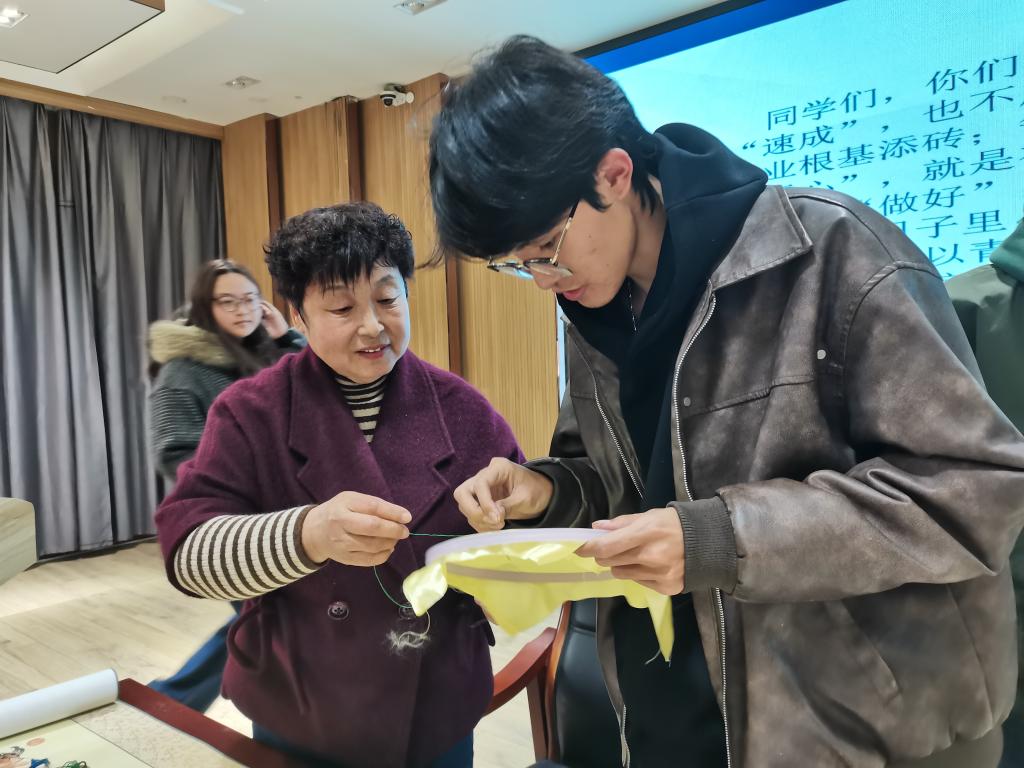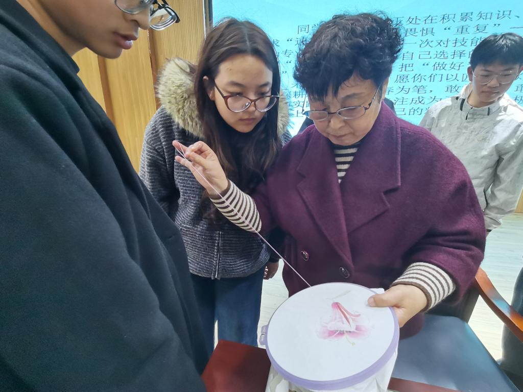 在讲座尾声,程老师提到:“什么叫工匠精神?工匠精神就是奉献精神,就是坚守、严谨、专注、耐心、恒心、一丝不苟,精益求精,创造出优异的作品。”她鼓励在场同学们:“汴绣需要热爱,更需要坚守。希望你们能以工匠精神深耕技艺,让这门千年绣艺在新时代绽放光彩。”