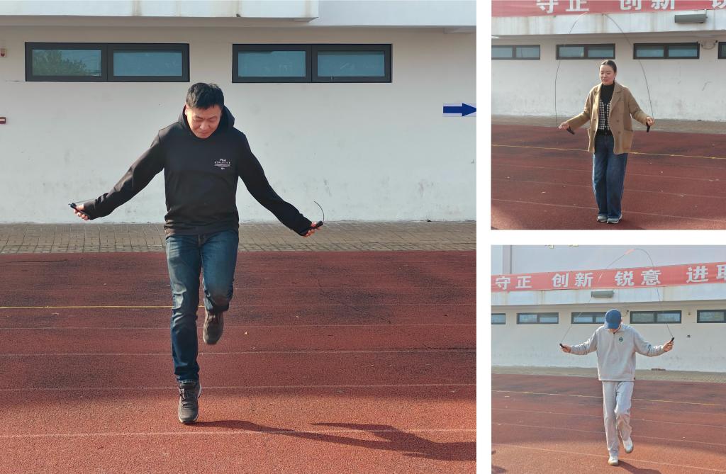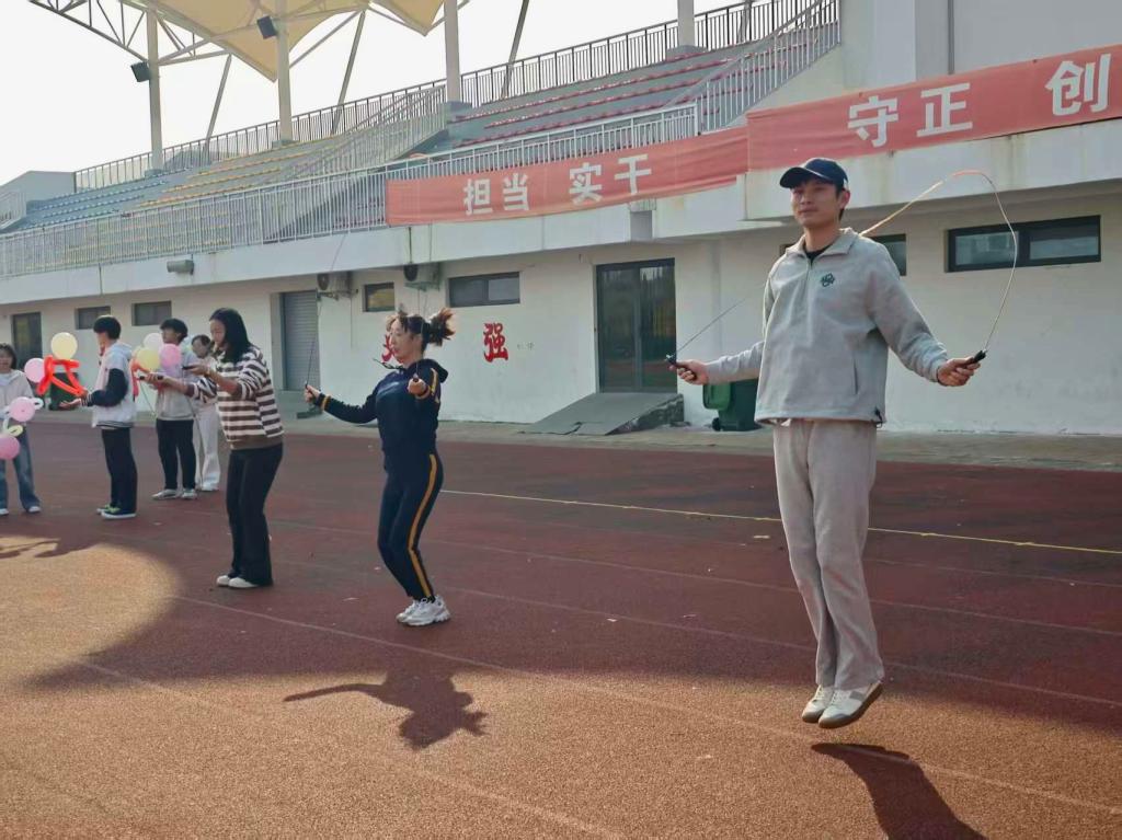 11月5日下午,学院在学校东操场组织开展了跳绳健身活动。活动开始后,教师们迅速进入状态,伴随而来的是绳子破风发出的“嗖嗖”声,密集而富有节奏,活动现场气氛热烈,欢声笑语不断。