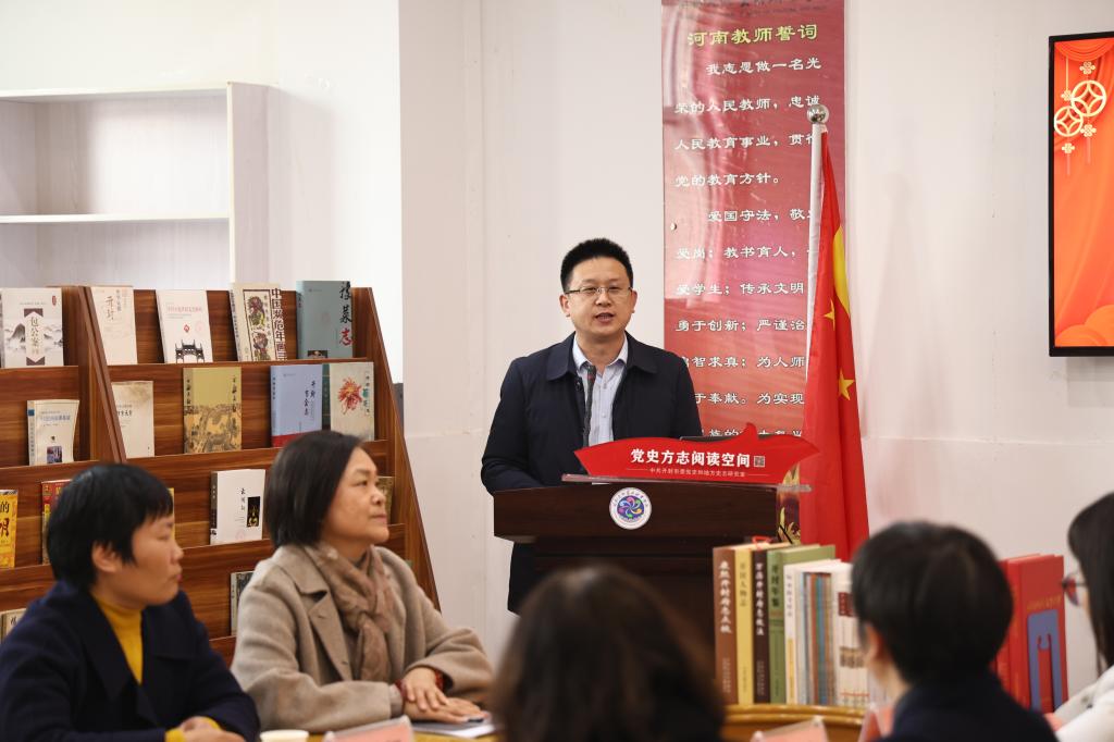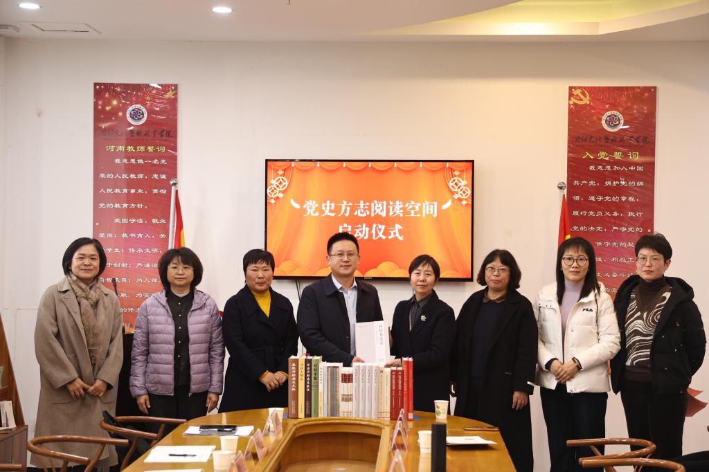 2025年12月18日下午,“党史方志阅读空间”启动仪式在我校图书馆党建书屋正式举行。市委党史和地方史志研究室主任唐新伍,开封文化艺术职业学院党委委员、副校长刘咏梅莅临仪式现场,市委党史和地方史志研究室部分代表、我校图书馆全体教职工及初等教育学院学生代表共同参与本次活动。