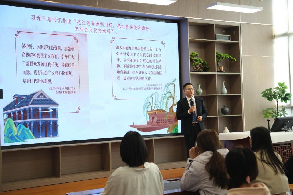 他通过讲述杨靖宇在开封读书、焦裕禄带领兰考人民除三害等红色故事,介绍李大钊讲演处、水东烈士陵园、毛主席视察黄河纪念亭等红色地标,分享王若飞在开封的革命活动、豫东抗日根据地的斗争历程、兰考人民的治沙成果以及开封在改革开放中取得的伟大成就等,将开封红色基因以春风化雨的形式传递到师生的内心深处。