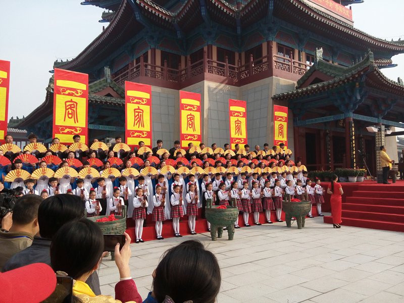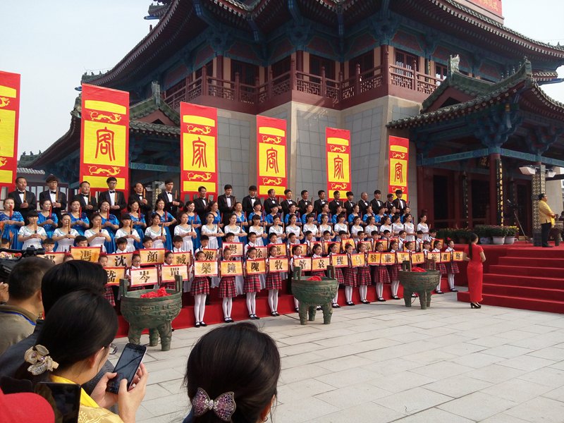 来自我院团委、幼儿教育系、教育科学系、信息电子系的60名学生作为祭拜仪式合唱队的成员在仪式中齐声吟唱大会主题歌《同根颂》。