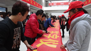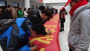 11月26日下午4点,工艺美术系在艺术楼一楼举行“文明乘车,共建和谐社会”签字活动,出席此次活动的有系主任曾广、系党总支副书记郝建民、系办公室主任侯强以及辅导员和全体学生。
