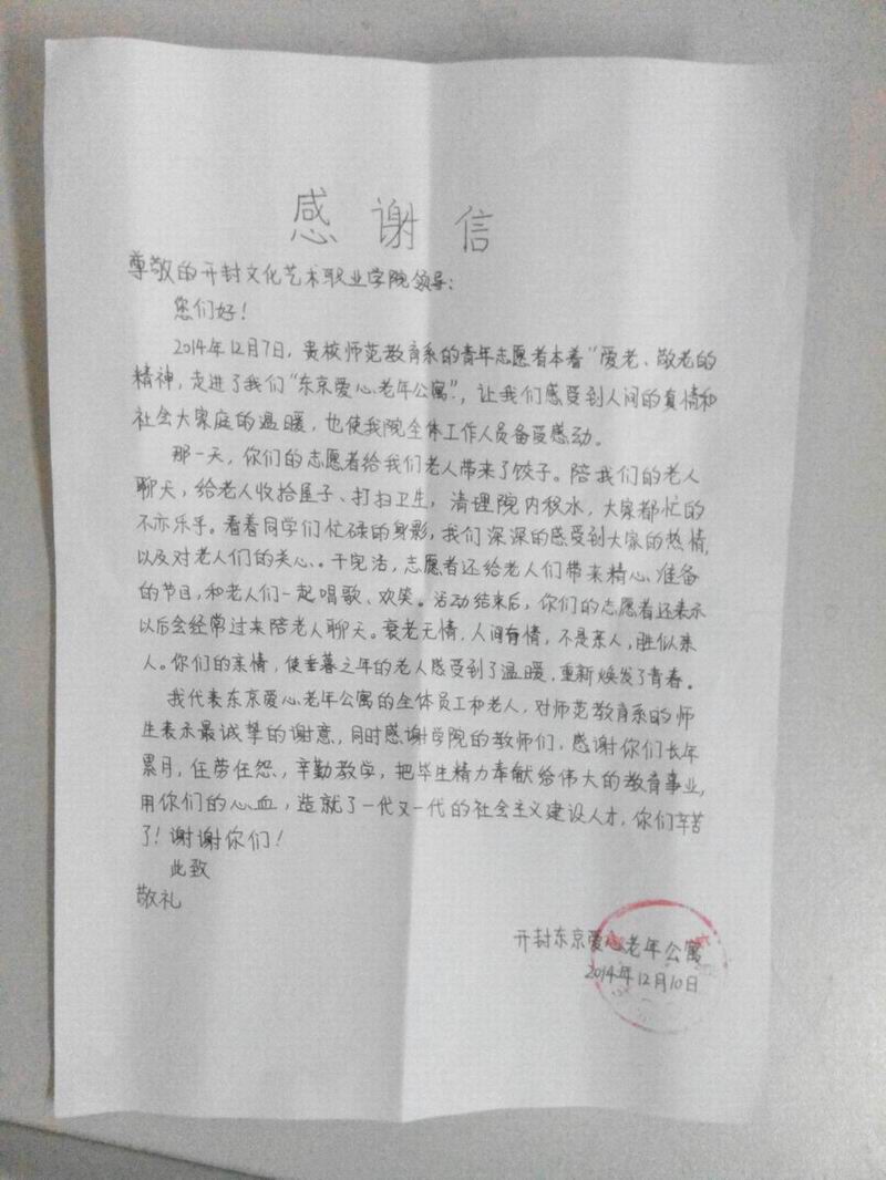 今天东京爱心老年公寓的院长来到师范教育系表示感谢,并送来了感谢信。