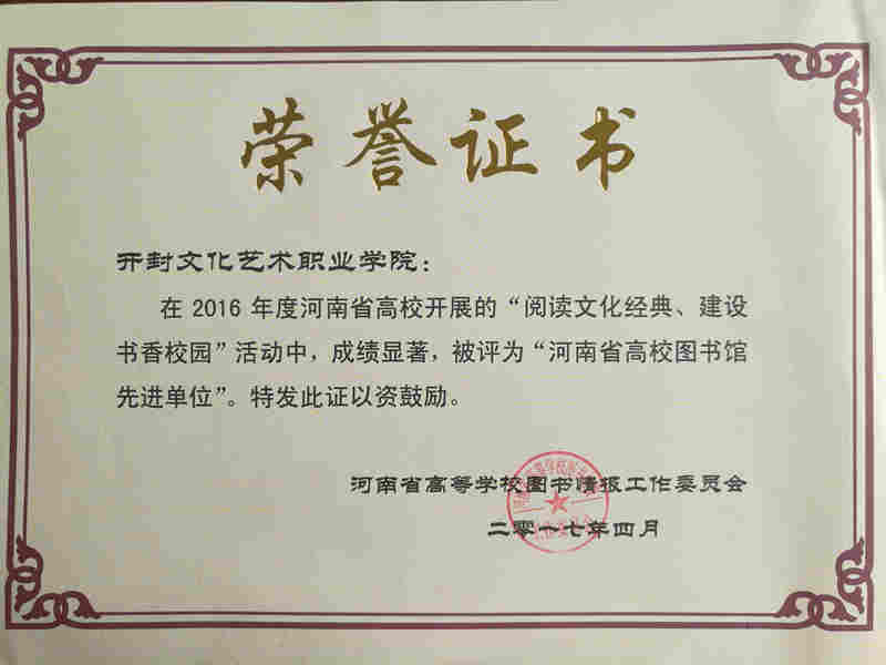 会上,对2016年在河南省高校图书馆事业建设和发展中做出突出贡献的单位和个人进行了表彰。我院在2016年河南省高校开展的“阅读文化经典、建设书香校园”活动中,成绩突出,被评为“河南省高校图书馆先进单位”,这是我院首次获得这一殊荣。同时,图书馆孙玉玲、吴杰、张敬召、徐舒4位老师喜获图书馆工作30年荣誉证书。在闭幕式上,刘淑梅作为新任馆长上台做了关于我院情况介绍和图书馆工作设想的发言。