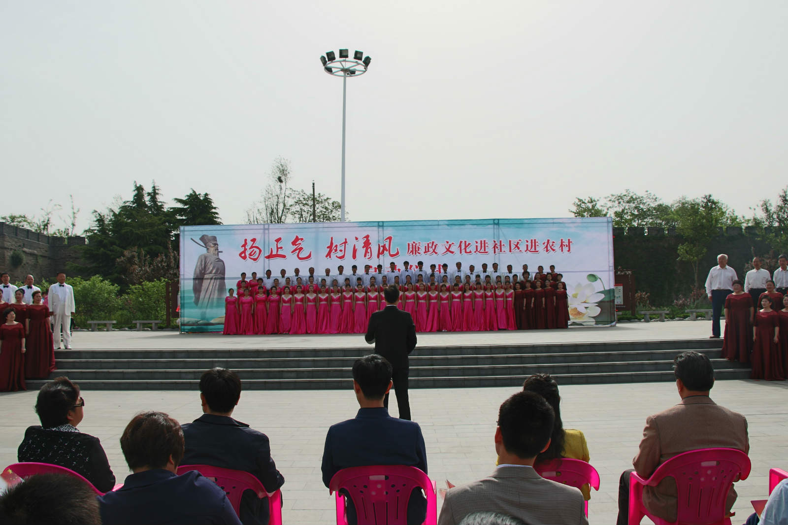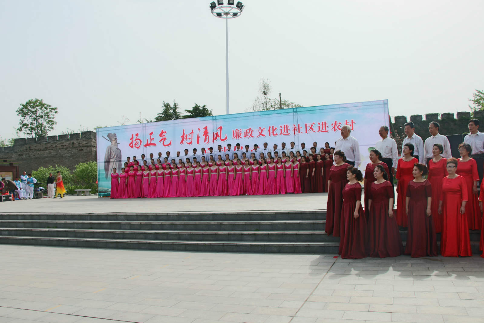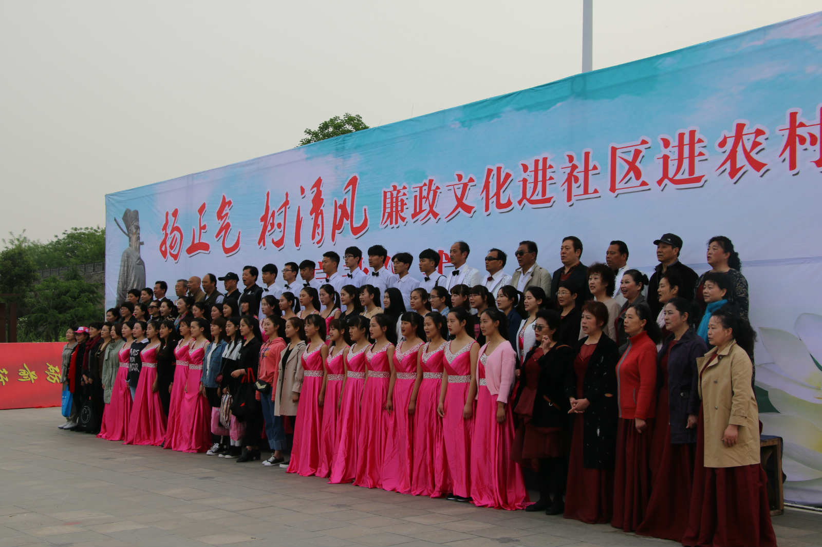 4月19日上午九点,由市纪委、市文广新局联合开展的“扬正气树清风 廉政文化进社区进农村”系列活动在开封城墙公园科普广场正式启动。学院团委应邀选派27名同学,参加本次启动仪式的节目汇演活动。
