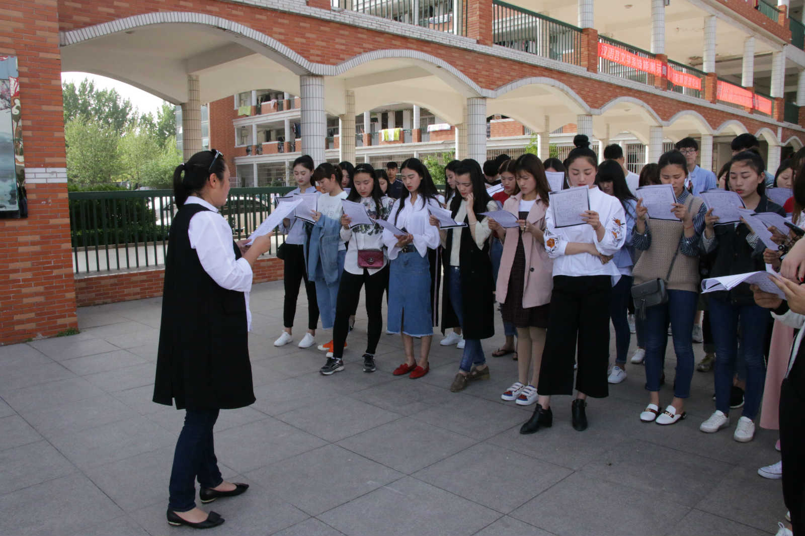 据悉,学院团委于4月16日接到活动组委会邀请,助力该项活动中大合唱《纪检监察之歌》的表演工作,此时距离启动仪式正式开始只剩下三天时间。接到邀请后,学院团委精心选拔出27名同学,当日便立即组织开展彩排训练。接下来两天里,同学们在指导老师的带领下,充分利用课余时间,不畏烈日与疲惫的考验,在有限的时间之中,尽全力为本次演出做准备。演出前,同学们集体步行前往演出地点。演出期间,同学们向现场嘉宾及社会各界人士献上荡气回肠、铿锵有力的合唱表演,出色的完成了此次演出任务。