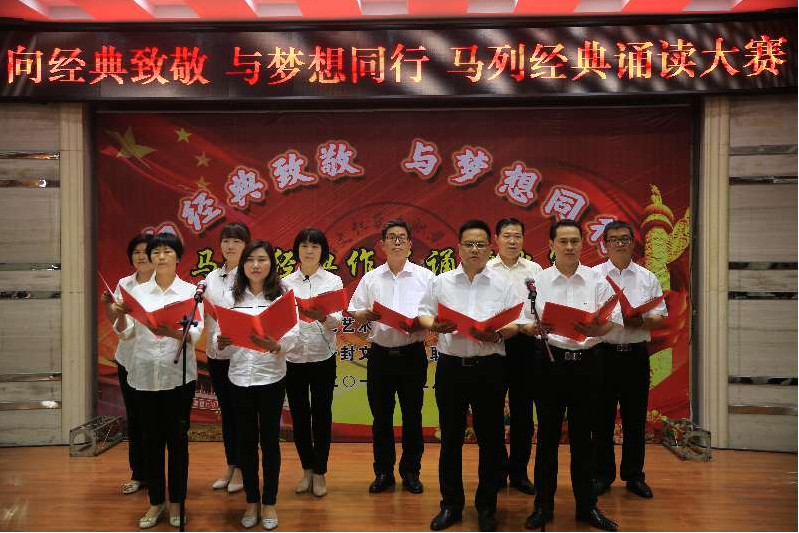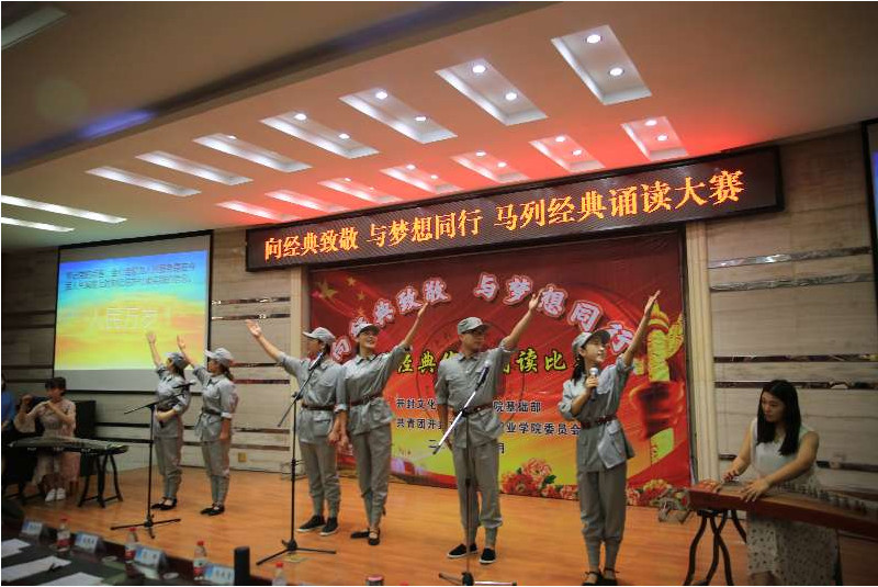 为全面贯彻全国高校思想政治工作会议精神,进一步丰富校园文化生活,彰显校园文化气息,提高当代大学生的综合素质,提升学生的爱国主义情怀,积极营造全院师生阅读经典、亲近经典、诵读经典的浓厚氛围,开封文化艺术职业学院于5月10日下午,在学院一号报告厅隆重举行了“向经典致敬 与梦想同行” 马列经典作品诵读大赛。学院有关领导和部分师生参加了活动。