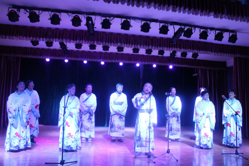 专场活动在毛主席诗词《长征》、《人民解放军占领南京》等激情澎湃的旋律中拉开帷幕。接着,由明开瑜老师演唱的《沁园春•雪》大气磅礴,表现了毛主席气吞山河的革命情怀;牛普选、杨斌两位老师的诗朗诵《我骄傲,我是中国人》,让观众穿越历史隧道用心感受了从远古时代到现代文明中国人百折不屈高贵品质;王开星老师朗诵的《生如胡杨》、李恒方和葛仲颖两位老师朗诵的《岳阳楼记》、以及集体宋词连诵都让观众耳目一新,切身感受到了传统文化的魅力所在。