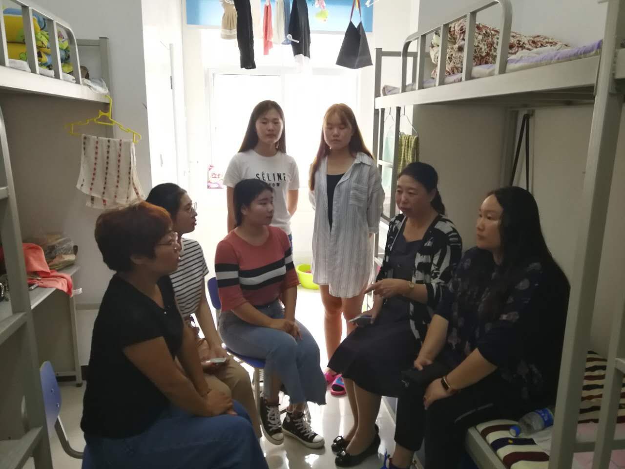 系领导和班主任逐一走访新生宿舍,与同学们亲切交谈,查看、询问报到和住宿等情况,详细了解各方面的问题,并一一解答和落实同学们提出的问题,倾听同学们第一天的入学感受,并祝贺同学们成为幼儿教育系大家庭的一员,希望同学们能尽快熟悉校园环境,融入到新的学习、生活中,以良好的精神面貌投入到即将开展的入学教育和军训中去。