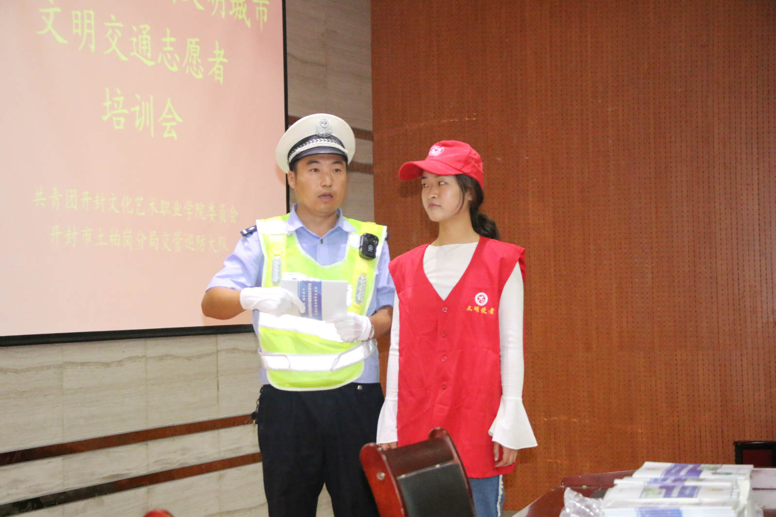 此次志愿服务活动的主要是维持开封市街道的清洁与卫生,维持繁华路段的乘车秩序,倡导文明行车、文明乘车、文明通行,制止乱闯红灯、乱翻路栏等不文明交通行为,引导广大市民真正理解、真诚支持、真情参与文明交通行动,做文明交通的倡导者、实践者和守护者。活动前,为了优秀的完成本次活动,学院团委邀请开封交警支队民警,对执行本次任务的青年志愿者们进行了简单礼仪培训,统一规范交通法规、交通岗站姿站位以及劝导用语,确保志愿者们在活动中遵守交通规则,同时规范、文明地提示行人、非机动车遵守交通规则,以青年志愿者用最美丽的微笑展示开封文职院大学生志愿者的风采。