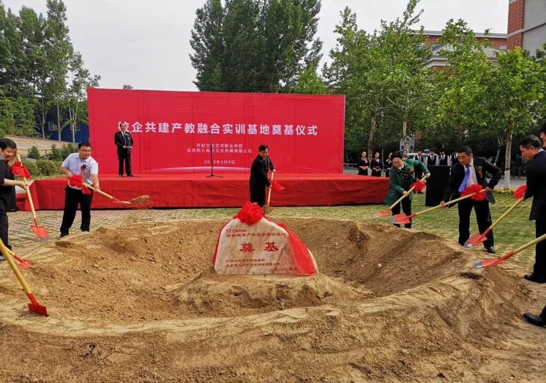 5月9日上午,我校在行政楼北侧停车场举行了一场简朴而又热烈的奠基仪式,标志着学校与合作企业北京同人有庆文化传媒有限公司共同建设的产教融合实训基地(TZ Center)项目正式落地。