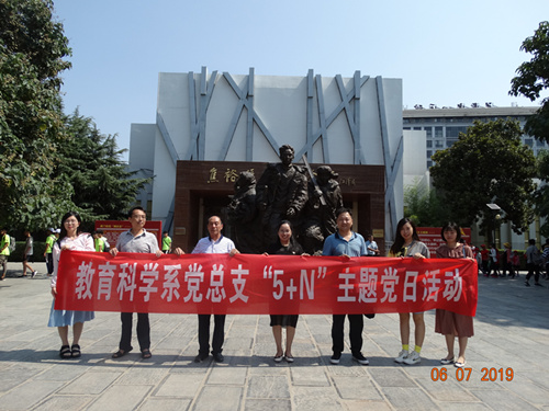 在中国共产党诞生98周年、新中国成立70周年之际,教育科学系党总支按照学校党委的工作要求于7月6日上午,系党总支书记庞国民带领党总支成员和部分党员教师代表赴兰考县开展了主题党日活动,本次活动的主题是“缅怀革命先烈、坚守理想信念、不忘初心、牢记使命”。