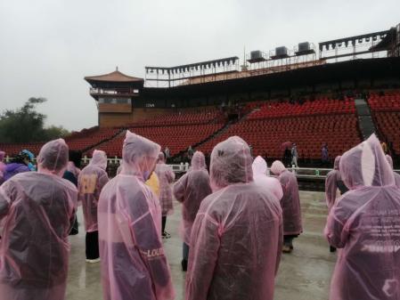 菊花文化节开幕式倒计时4天,同学们热情洋溢、信心十足地来到实景演出现场清明上河园进行走场、彩排。这几天阴雨绵绵,天气骤然降温,演出现场又是在水边,晚上温度低至五六度,学生们穿着演出服每天排练到夜里十一二点,从没有人抱怨喊冷;节目一遍遍排演、姿势和唱法一次次练习,但是没有一个学生言累叫苦,大家坚持完成好自己的任务,每个人都坚持到最后,一个掉队的也没有。虽然同学们出场的时间只有短短的十几分钟,但是背后的付出却是难以想象的。经过精心准备,学生的演技和对节目与角色的把握都有了大幅提升。