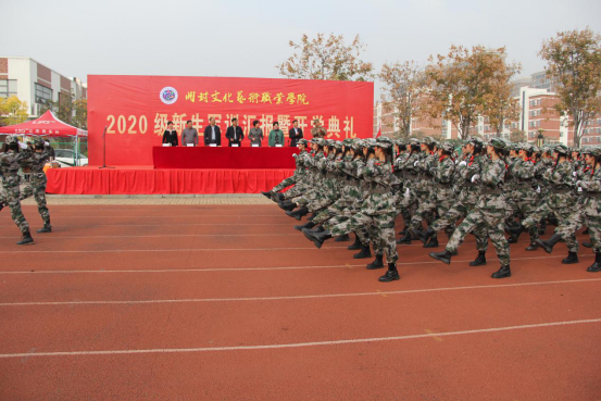 大会在一阵庄严的国歌声中拉开帷幕。沈洁霞检阅军训队伍。新生们经过两周的军训洗礼,褪去了刚入学时的稚气,收获了军人的坚毅正气。随着一声令下,2020级新生军训方队依次经过主席台,进行了分列式汇报表演。之后,新生方队分别带来了三声三相、战术方队和擒敌拳的精彩表演,同学们声音洪亮、动作敏捷,气势如虹,赢得全场热烈掌声。