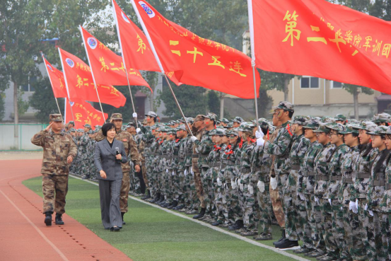 校长沈洁霞检阅军训方队