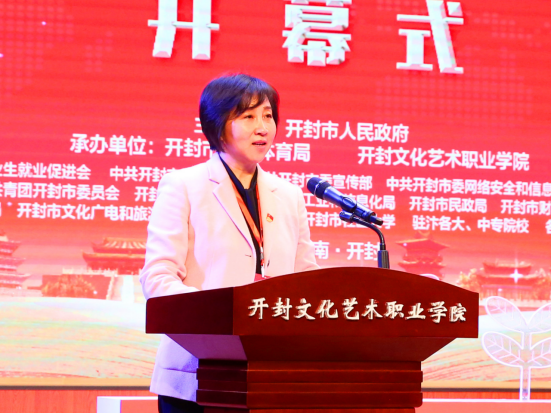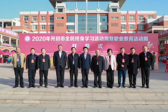 今年开封市全民终身学习活动周暨职业教育活动周的主题是“全民智学,技能强国,确保‘六稳’,落实‘六保’”,活动由开封市人民政府主办,开封市教育体育局、开封文化艺术职业学院承办。河南省大中专毕业生就业促进会会长周铁项、开封市人民政府副市长刘震、开封文化艺术职业学院党委书记任洪河、校长沈洁霞,开封中华职教社主席王树强等出席开幕式,开封市各县区、中小学校及社会各界代表400余人参加活动。