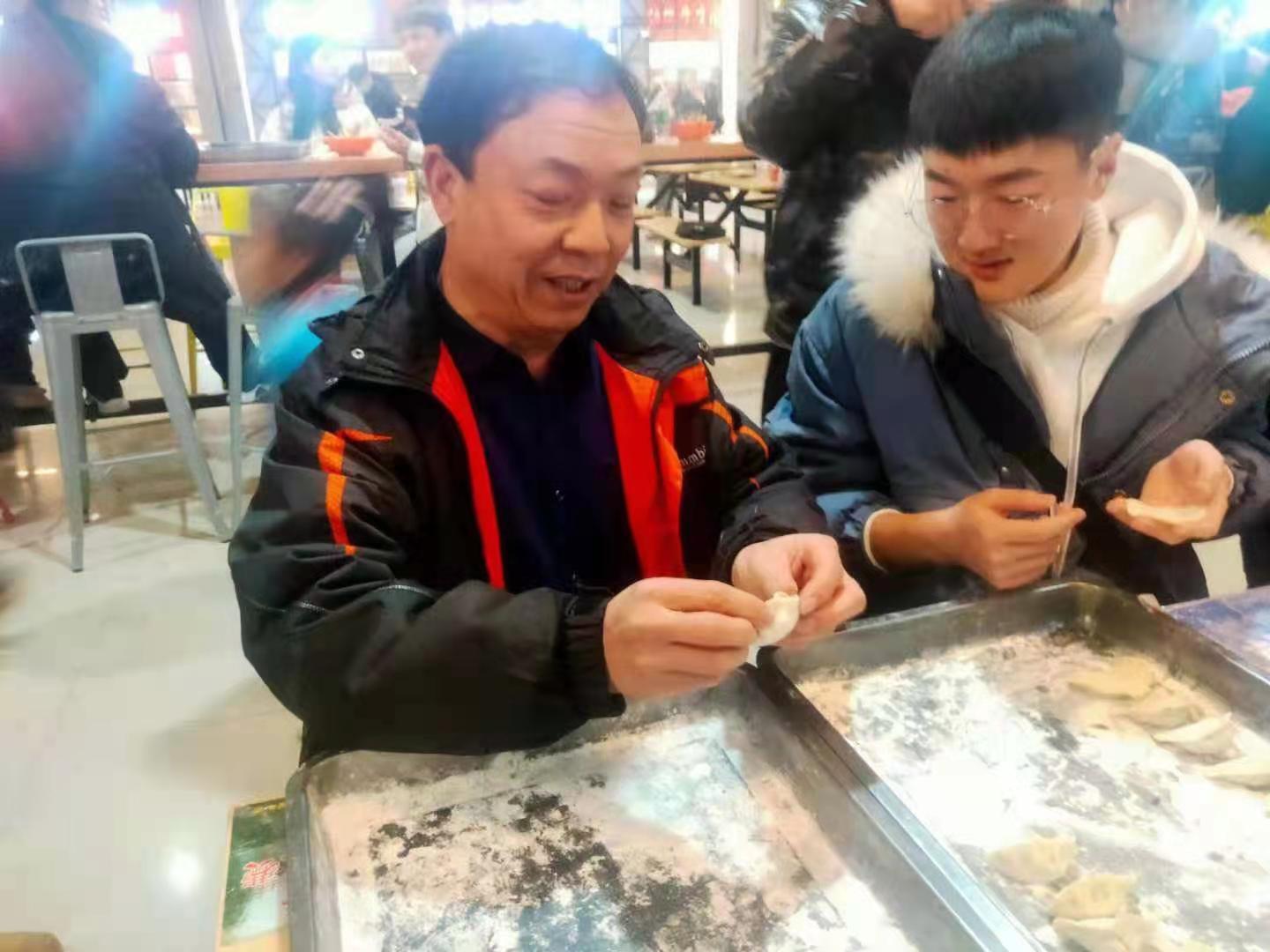 活动中,老师、同学们积极参与其中,分工明确,相互配合,各尽其能,各显其才。手法有挤有捏,包出的饺子也是各式各样,有圆圆胖胖的,有瘦瘦长长的。大家围成一桌,边劳作,边交流包饺子的各种心得,欢声笑语,其乐融融。