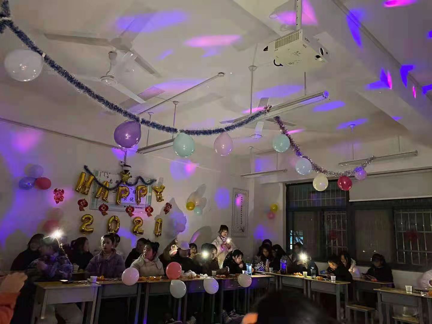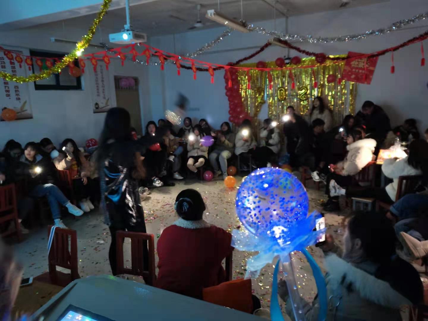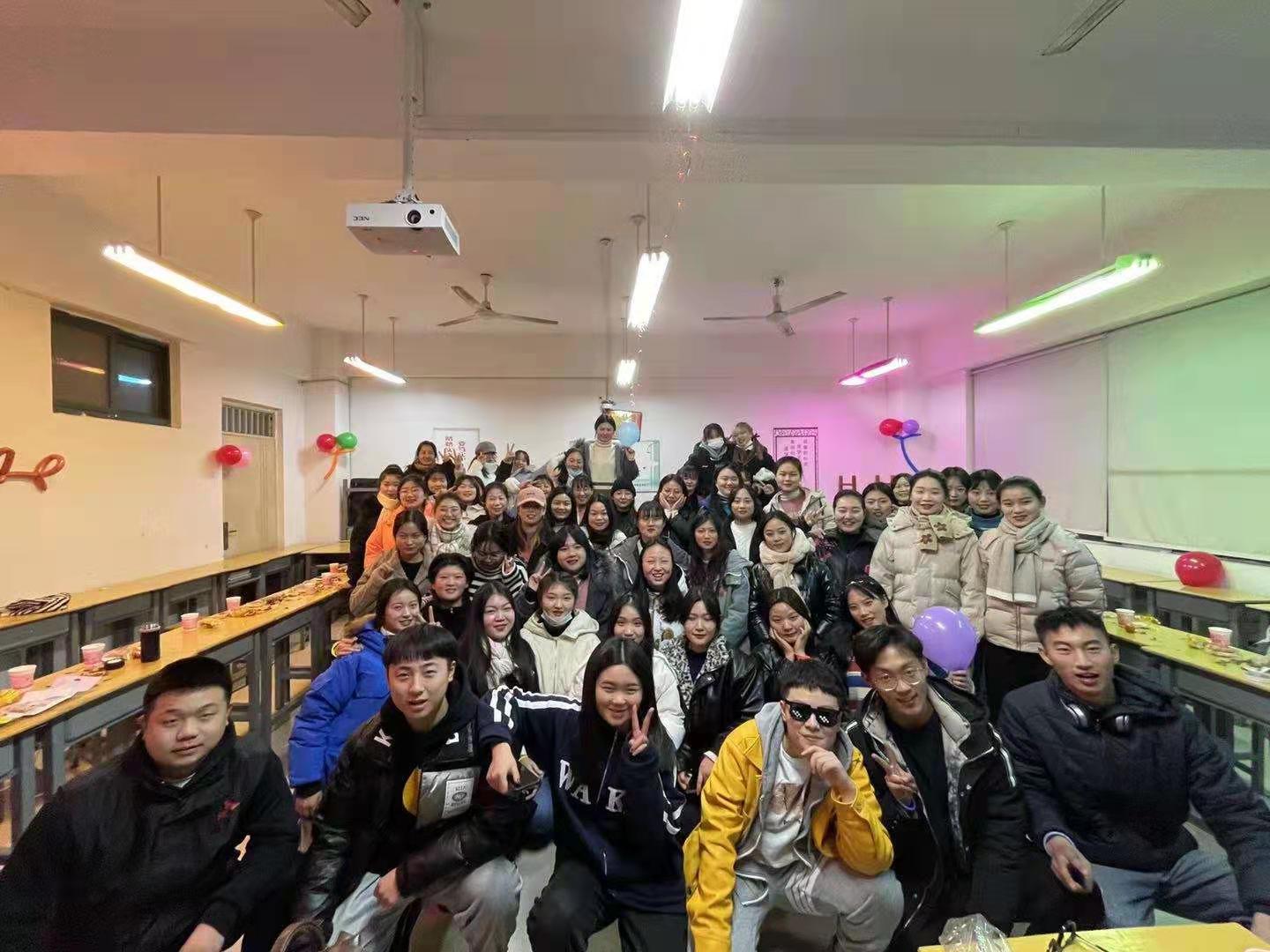 同学们将教室装扮得五彩缤纷、亮丽一新,美食的香味,欢乐的气息,浓浓的节日气氛饱含着温馨和暖意,活动内容丰富多彩,形式多样,大家互相分享着喜悦、幸福、快乐,共同庆祝2021年的到来,领导和辅导员老师们也来到各班向同学们致以节日的问候。