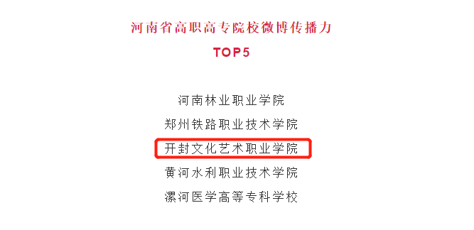 近日,在河南省教育厅发布的《河南省教育系统2020年度新媒体白皮书》中,我校官方微博全年发布2104篇,原创文章1054篇,原创率为50.09%,获得河南省高职高专院校微博传播力第三名的好成绩。