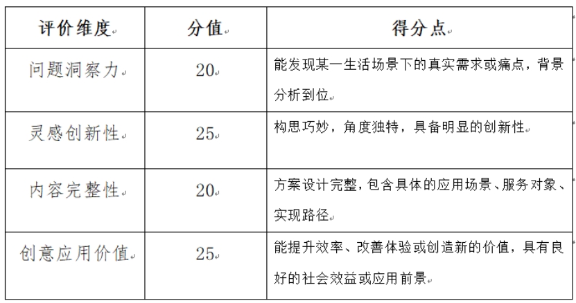 2、评分方式:教师工作部、学生工作部将与现代教育技术中心特邀技术专家共同组成评审小组,对收集的创意进行评选,具体评分细则如下: