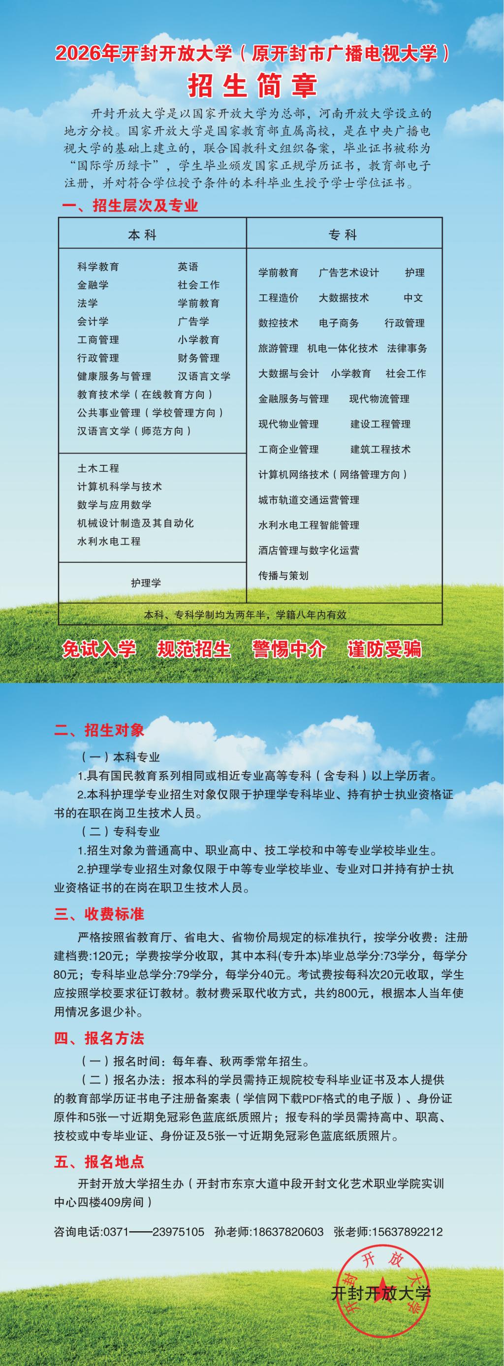 开封开放大学2026年春季招生开始。报名需要材料如下: