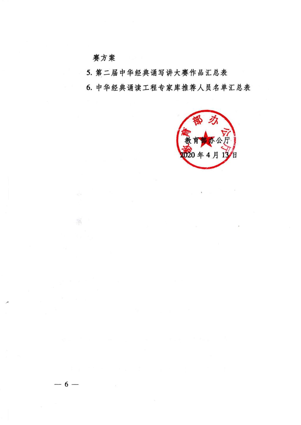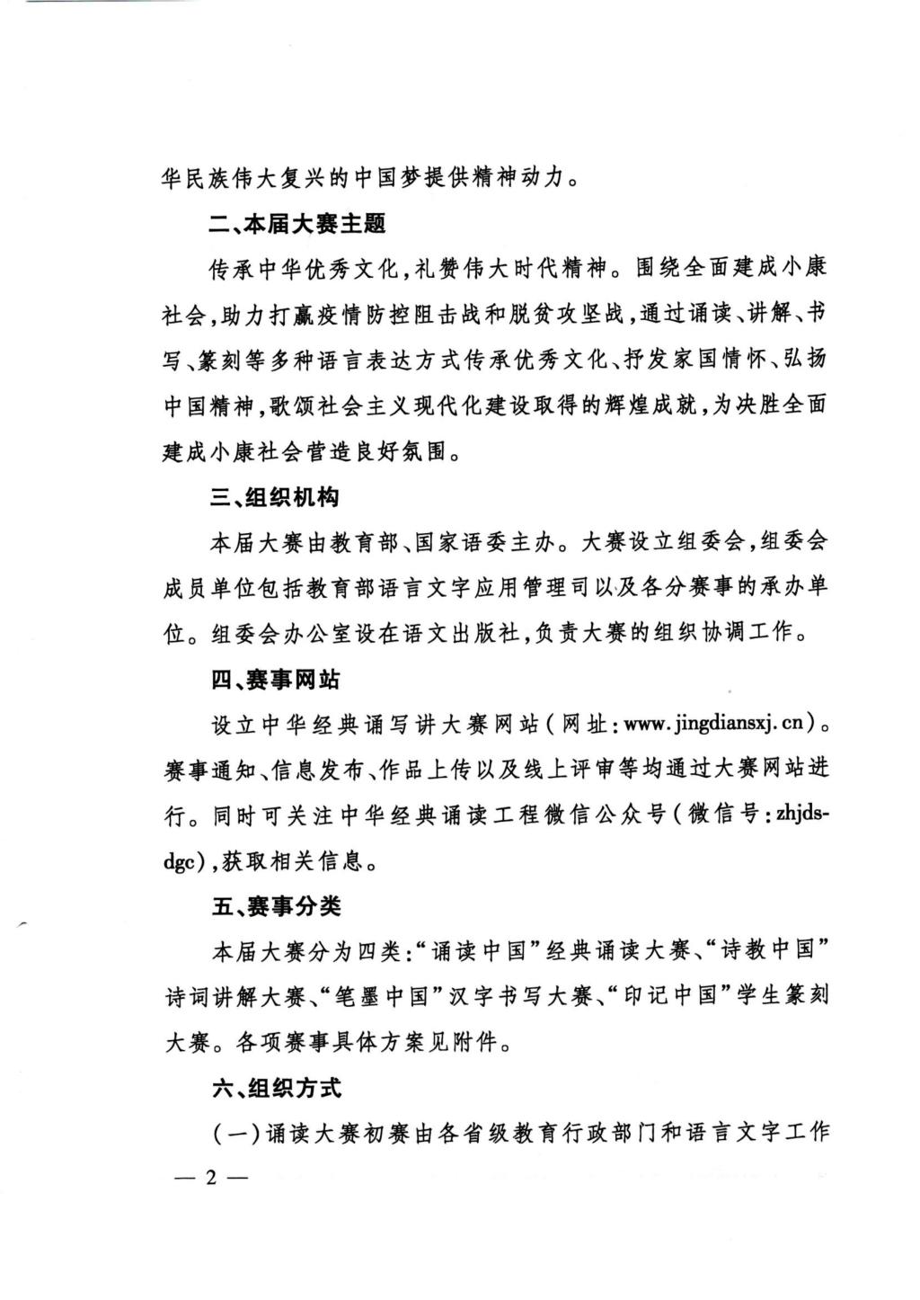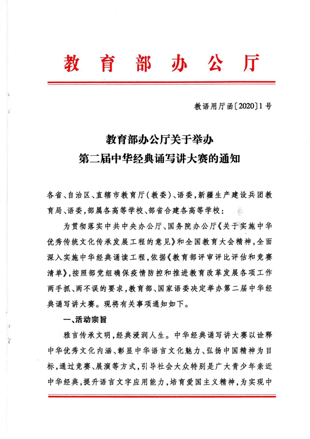 教育部办公厅关于举办第二届中华经典诵写讲大赛的通知