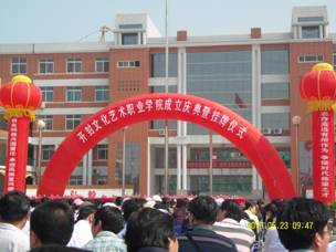 2010年5月23日,这是一个特别的日子,这个日子必将镌刻在每一个关心教育事业发展的开封人心中。这一天,是一个喜庆的日子,开封文化艺术职业学院成立暨挂牌仪式隆重举行。省教育厅厅长蒋笃运与市领导刘长春、周以忠、李艳萍、顾俊、朱丽萍、张勇、任文生、陈传智等出席庆典,共襄盛事,见证这激动人心的一刻。省教育厅厅长蒋笃运与市委书记刘长春共同为学院成立揭牌,大红绸布缓缓掀起、飘落,“开封文化艺术职业学院”几个大字熠熠闪光,在阳光的照耀下分外夺目。那一刻,掌声雷动,鼓乐齐鸣,我市又一所全日制普通高等院校诞生了。有了文化艺术职业学院,“科教兴汴”战略、开封由文化旅游大市向文化旅游强市跨越又多了一个强有力的支撑点。有了文化艺术职业学院,承载着无数辉煌的文化名城开封,又为中国高等教育发展书写了新的篇章。