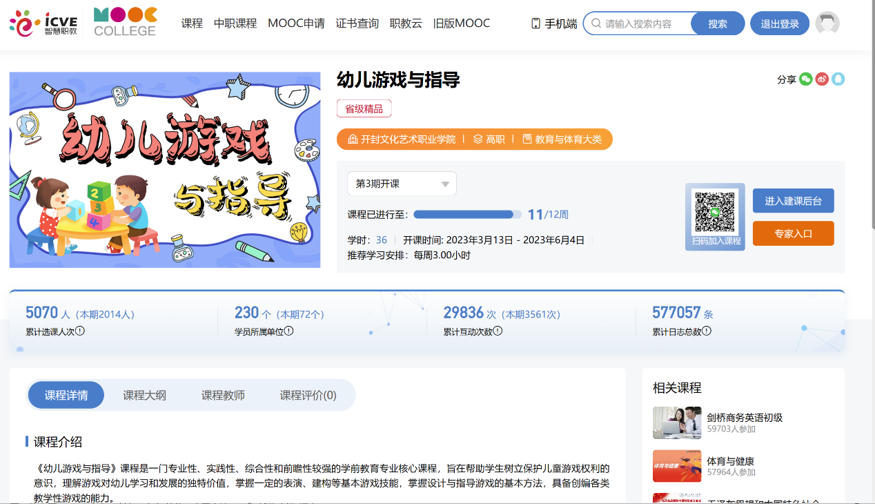 我们的课程资源不断丰富,教学形式和内容不断优化,真诚期待您的加入,让我们一起开启《幼儿游戏与指导》课程的学习之旅吧!