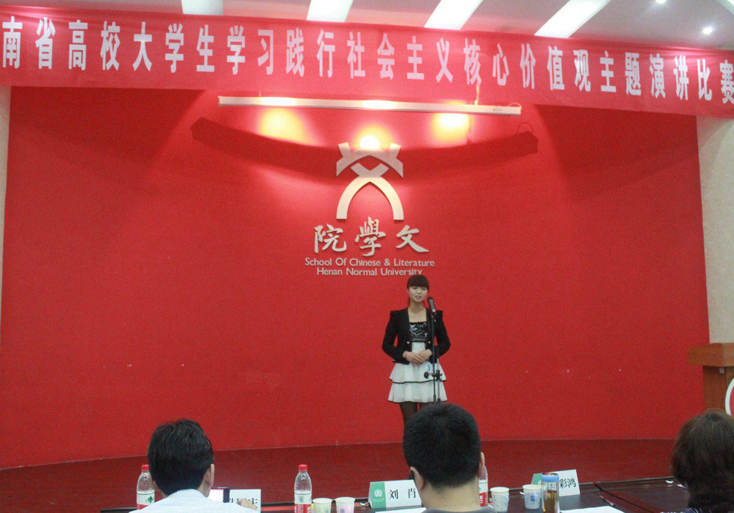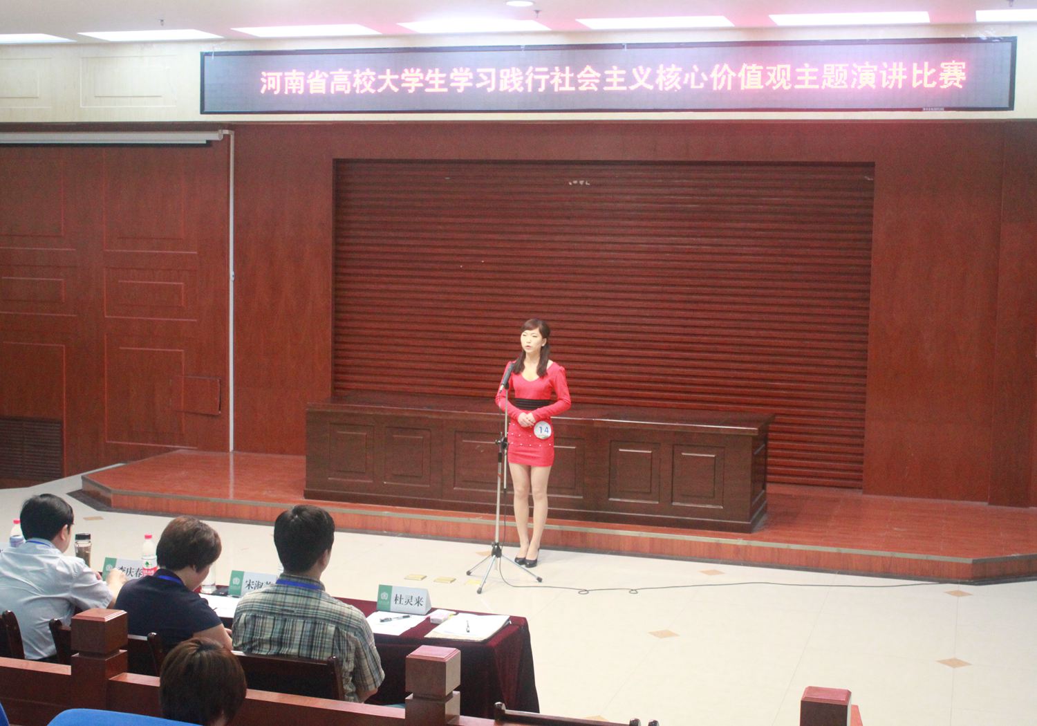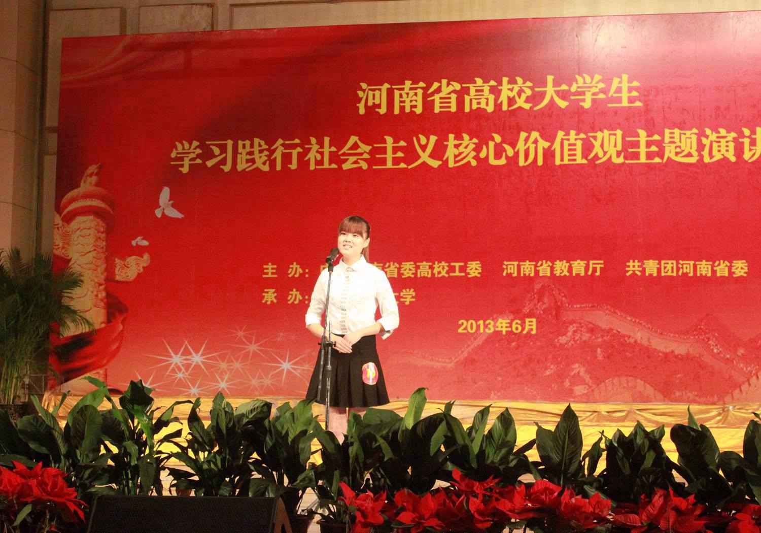 由省委高校工委、省教育厅、团省委主办的河南省高校“大学生学习践行社会主义核心价值观主题演讲比赛”6月3日、4日在河南师范大学举行。来自全省74所高校包括研究生、本科生、专科生在内的140名选手参加了此次比赛。经过预赛和决赛的激烈角逐,我院教育科学系朱凤洁同学荣获三等奖,外语系王艺铃同学和文化传媒系卢乙芬同学荣获优秀奖。