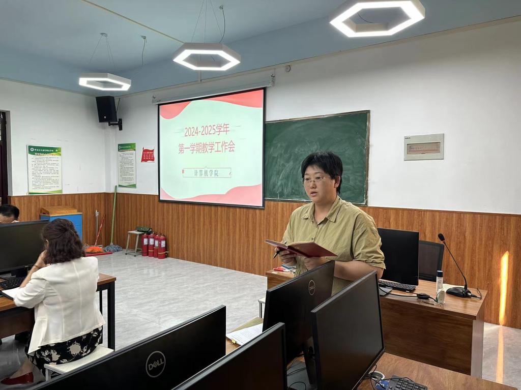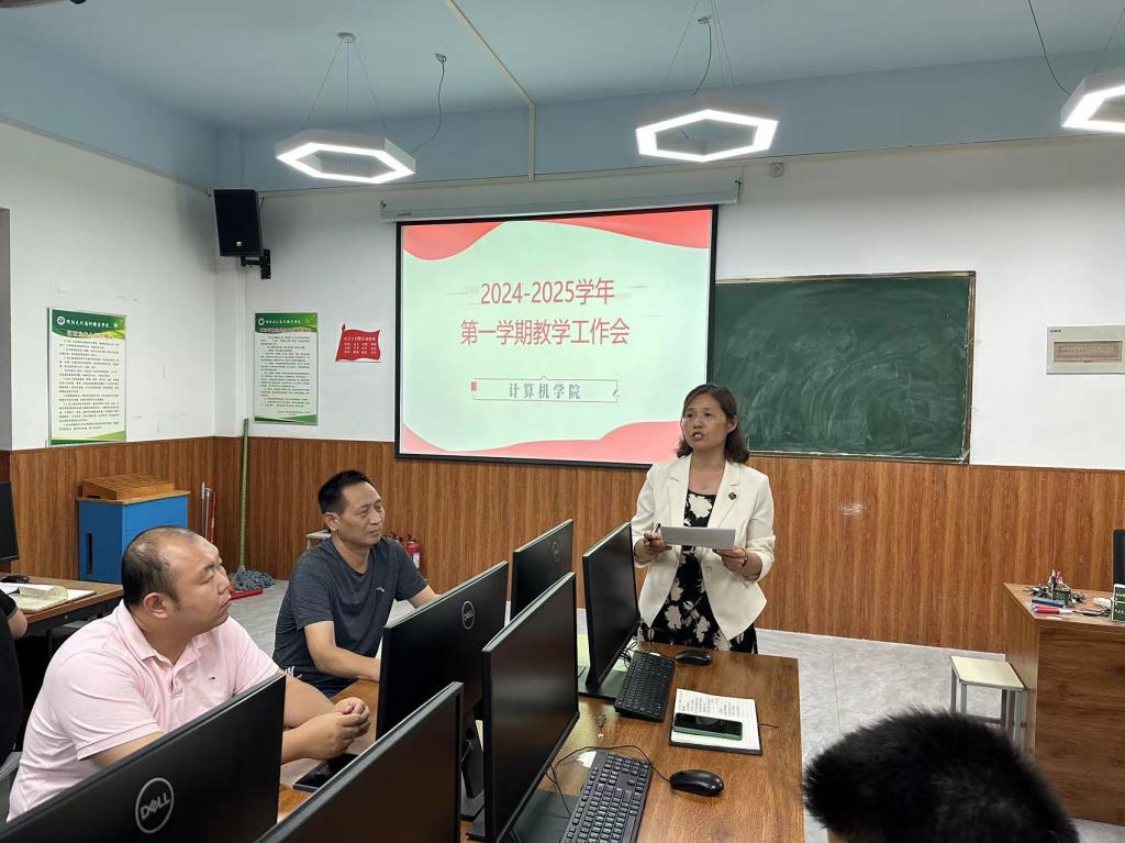 新学期,新开始,新希望。为确保开学后各项工作有序、平稳、高效地开展,9月4日下午,计算机学院在3101召开了2024-2025学年第一学期全体教职工会议,学院党总支书记程廷江、院长马卉芳、学院全体教职工、共建专业全体教师参加会议。学院党总支副书记王磊主持会议。