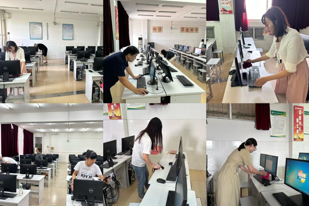 会后学院全体教师开展机房设备维护志愿活动,对学院机房和网络教室从网络设备、教室环境、教学安全等多方面进行了全方位检查,确保2024年秋季学期教学顺利开展。