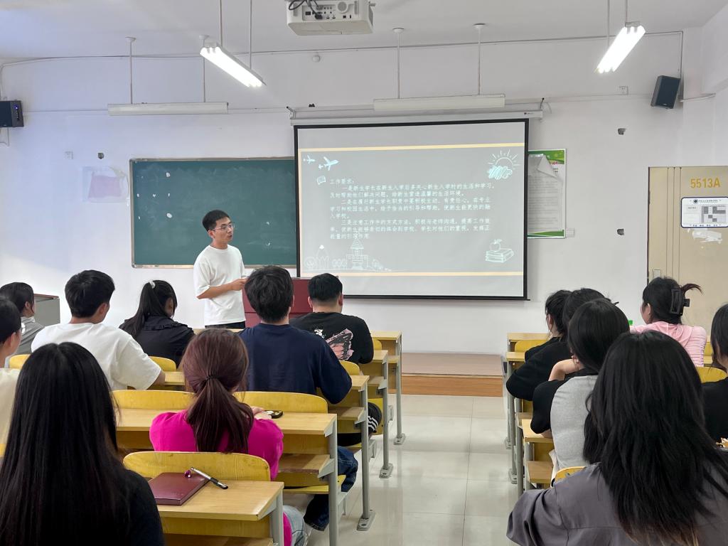 会上,刘含对积极报名助理辅导员的同学表示肯定,他介绍了助理辅导员的工作内容:作为新生的引路人,应尽快明确“报到前”“报到”“报到后”三个阶段的具体工作职责,并主动向新生介绍学校、学院的情况,提醒新生注意校内校外安全,谨防网络防诈骗等。同时他提醒在座同学,助理辅导员是新生健康成长的指导者和引路人,是学生工作队伍的重要组成部分,同学们要树立成为一名优秀的助理辅导员的决心和信心,锻炼良好的工作能力和心理素质,为新生起到好的带头作用,在帮助他人的实践中锻炼成长。