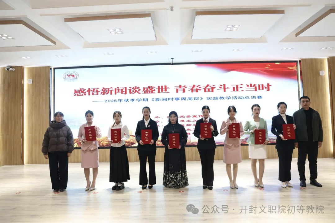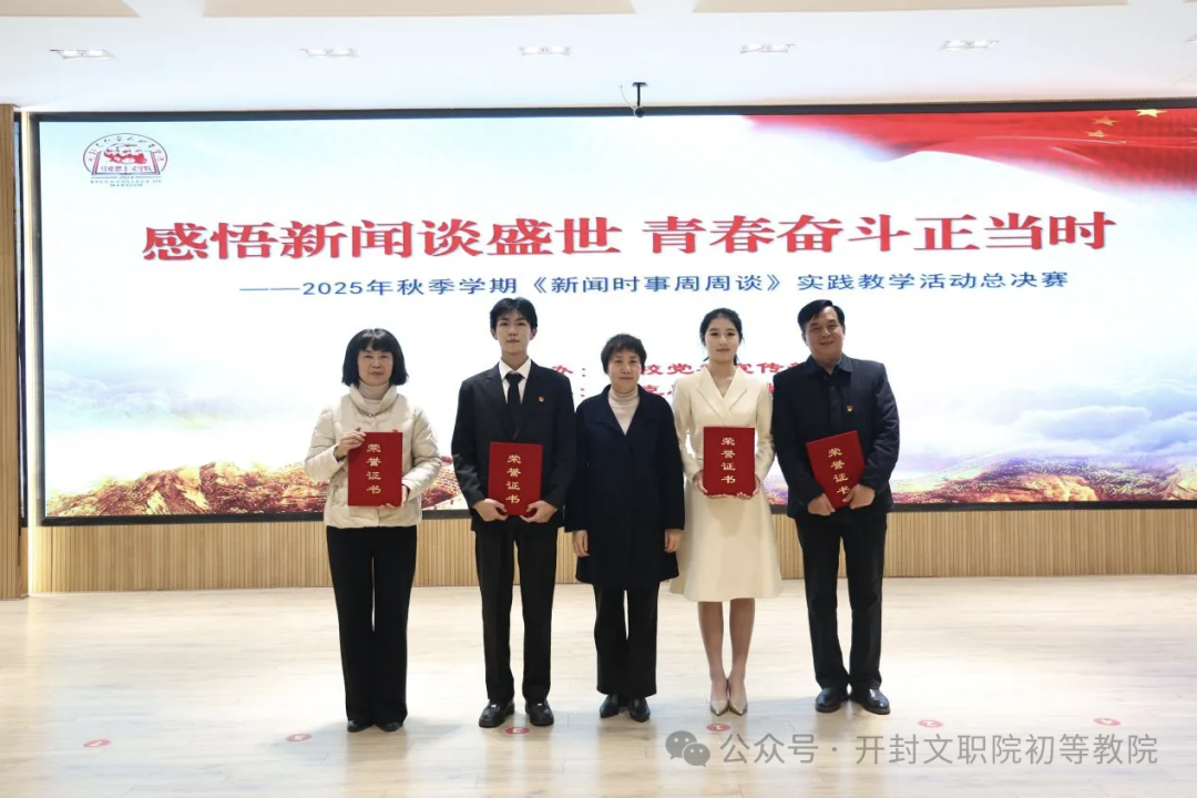 12月17日下午,我校2025年秋季学期《新闻时事周周谈》实践教学活动总决赛在四号报告厅圆满结束。初等教育学院学子凭借扎实的理论功底与富有感染力的现场表现,在比赛中脱颖而出。其中,郭佳睿同学荣获特等奖,朱焓菲、耿庆萍、敬佳晴三位同学荣获三等奖。